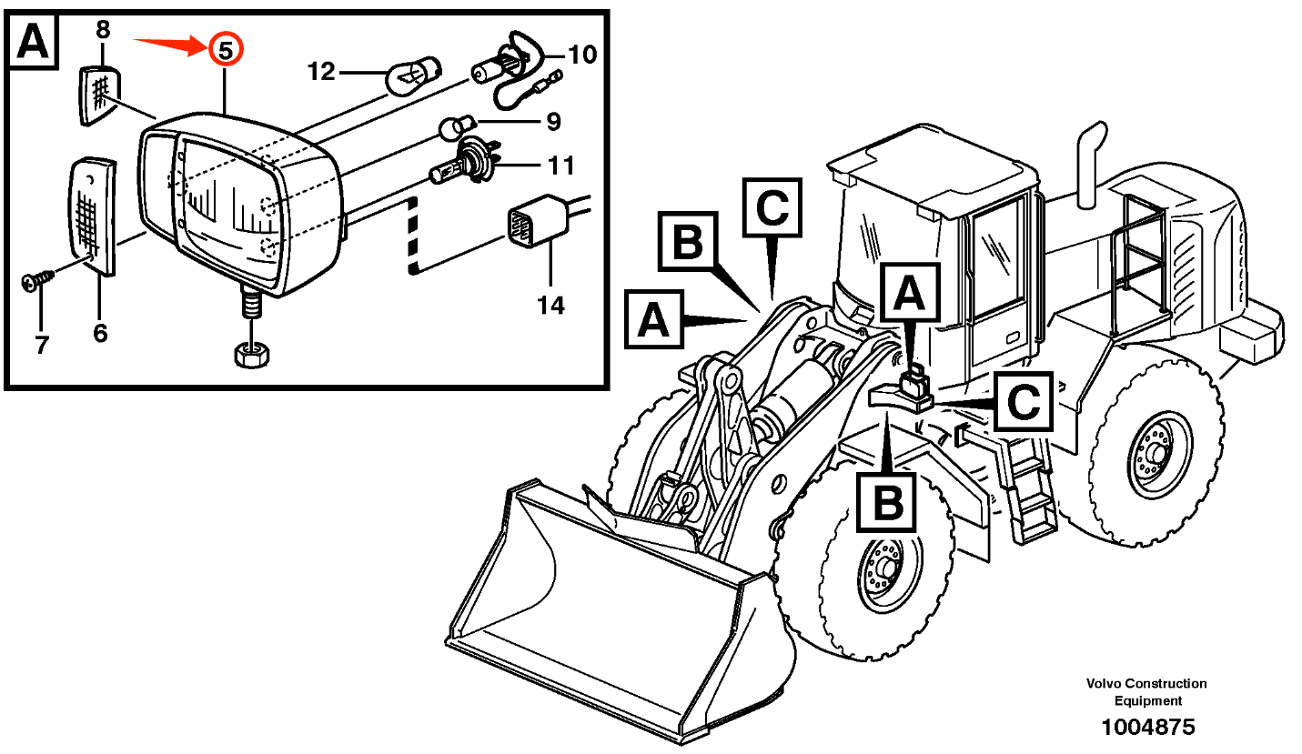 Volvo L60F L90F L110F L120F L150F L180F L220F L10G L150G L180G L220G L250G Head Lamp VOE 11170059 11170060 11170062 11170063